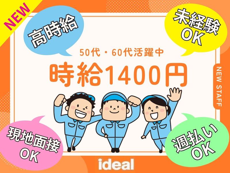 求めている人材 ★知識・経験不要✨ 覚える事も少なめのシンプル作業! 未経験から活躍できるお仕事です! <こんな経験活かせます!> 製造・軽作業・仕分け・梱包、 品出し・倉庫・検品・包装・フォークリフト ピッキングなど♪