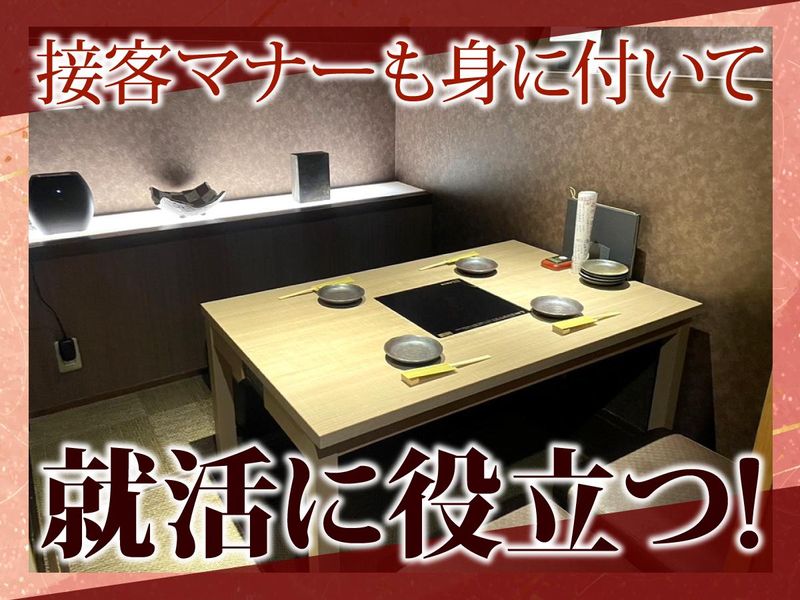 職場環境 宴会やデート、お誕生日の場で 利用いただいているお店。 そんなん接客に自信ないしな~・・・ と思われるかもしれません。 でも! イチから丁寧に教えていきます◎ ここで言葉遣いなどを学んでいきましょう!