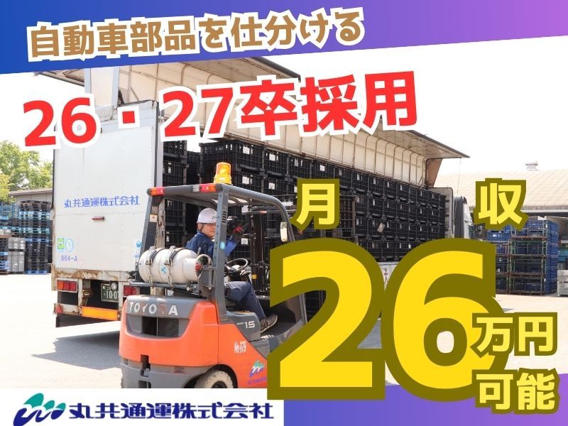 仕事の内容 ▼∴▼∴▼∴▼∴▼∴▼∴▼∴▼∴▼∴▼ 【26卒の方、まだ募集OKです】 ※27卒,26卒もインターンシップOK 『地元就職が良い』 『デスクワークではなく、体を動かしたい』 『20代からしっかり稼ぎたい』 『給料、ボーナス、 福利厚生がしっかりした企業で働きたい』 『資格取得、研修費用を バックアップしてくれる会社が良い』 ▼∴▼∴▼∴▼∴▼∴▼∴▼∴▼∴▼∴▼ 【お仕事について】 トヨタ自動車部品を倉庫内の所定の位置に保管、 運びやすいように仕分けたり、まとめます。 手作業、リフト作業両方ありますが、 フォークリフト免許取得費用は会社が負担します。 【働き方】 作業エリアは5つあります。 それぞれのエリアに3~6名の作業員がおり、 リフト作業員、手作業員と分かれて、 自動車部品を入出荷作業します。 勤務時間は2交代制で朝は6時~8時出勤、 夜は19時~21時に出勤です。 【職場のイメージ】 年齢層は、10代~60代まで幅広く、 外国人も働いており賑やかで活気のある職場です。 【入社後スケジュール】 入社して約1ヶ月間は社内研修を行います。 ビジネスマナー・社会人の心構え、 コミュニケーション方法など 基礎の基礎から丁寧に教育します。 外部の工場見学にも出向きます。 ≪過去の新卒採用実績≫ ●23卒:2名 ●24卒:1名 ●25卒:3名 ◆過去の採用大学・専門学校◆ 愛知大学/愛知学院大学/中京大学/ 中部大学/名古屋商科大学/名古屋産業大学/ 名古屋短期大学/南山大学/名城大学/ 愛知農業大学校/山本学園情報専門学校 等 【会社説明】 私たちは、創業110年以上の歴史を持つ物流会社です。 馬車や人力車で荷物を運ぶ仕事から始まり、 時代の変化に合わせてトラック輸送へと発展してきました。 現在は愛知県を拠点に、 全国へ荷物をお届けしています。 自動車部品、飼料、食品原料など、 景気に左右されにくい分野を中心に、 荷物の「保管」から「配送」までを 一貫して担っていることが、 長く安定して事業を続けられている理由です。 また当社では、若手社員が早い段階から 活躍できる環境づくりを大切にしています。 職種を問わず、仕事に必要な資格取得や 外部研修は会社が積極的にサポートし、 経験を積みながら 着実に成長できる仕組みを整えています。 長年培ってきた信頼と安定した基盤のもとで、 若手が挑戦し、力を発揮できる会社。 それが私たちの強みです。