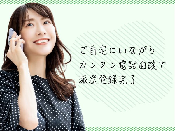 選考フロー <応募後の流れ> 応募➡面談➡お仕事紹介➡勤務開始 <面談方法について> ご来社は不要!! 電話面談でカンタン楽々!! 40分程度お電話のお時間を頂戴しております! 18時以降の夜間面談もご相談下さい! WEB面談も相談可能(画面オフOK)