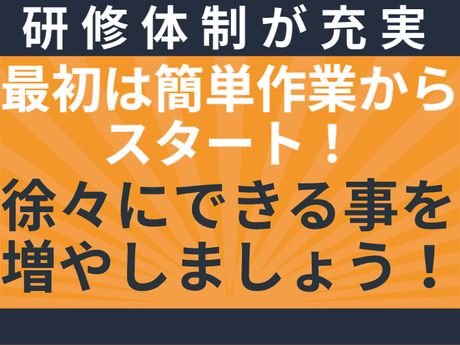 仕事内容 製造業が初めてでも安心して働ける職場環境◎ 日勤×土日休みでプライベートも充実可能◎ 研修しっかり&カンタン軽作業! 【仕事内容】 ■部品を機械セットし、ボタン操作 ■バリ取りなどの製品仕上げ ■製品の外観検査 ※1人作業でコツコツ・モクモクできる作業 ※扱うのは3~4kgほどのアルミ部品! ――――――――――――――― ▼▽未経験でも安心な研修体制▽▼ 入社してすぐは先輩スタッフが丁寧に教えます! (1)機械操作やバリ取りなどの簡単作業からスタート (2)上記に慣れたら、練習しながら外観検査工程開始 (3)上記が問題なくできたら一人前! 段階を踏んで教えていくので、 焦らず自分のペースで安心して働けます!