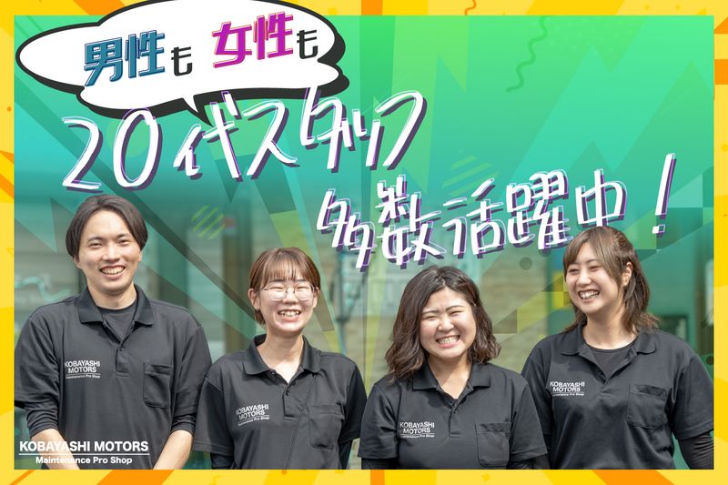 勤務地: 自動車整備工場「小林モータース」が勤務地です。 創業60年。 国産スポーツカーや輸入車なども多く扱う自動車整備工場です。 原則屋内禁煙(屋外喫煙スペースあり)