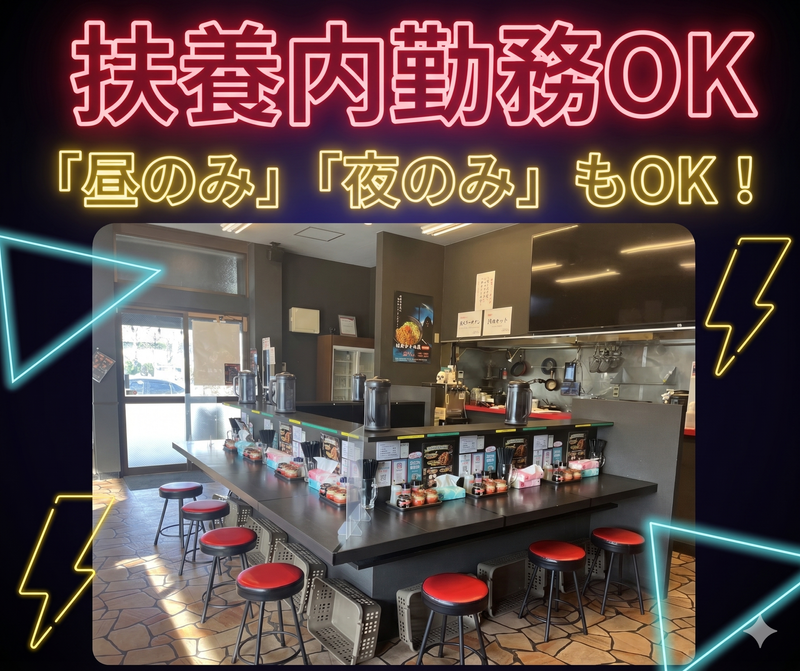 求めている人材 <未経験歓迎> 10代~40代まで幅広く活躍中♪ (年齢不問ですよ) ■経歴・学歴不問 ■扶養内勤務OK ■副業・WワークOK ■ミドル・シニア応援 <こんな理由でも歓迎!> □家から近いところがいい □Wワーク・家事と両立したい □安定してシフトインしたい □ゆくゆくは社員になりたい <以下の方も大歓迎!> ◆飲食店の経験がある方 ◆ラーメン屋での勤務経験がある方 ◆個人経営のお店で働きたい方