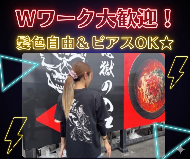 仕事内容 ※学生の方は募集要項・時給が異なります。 学生の方は直接店舗までお問い合わせください。 ⏰【下記の時間働ける方、求む】⏰ 【平日】 ⏰9:30~14:00 ⏰11:00~15:00 ⏰17:00(18:00)~22:00 (『昼のみ』『夜のみ』もOK!) 【土日祝】 ⏰9:30~22:00の間でシフト制となります。 ★土日祝も勤務可能な方の募集です★ (毎週ではなくても大丈夫です。) 「土日祝のみ」もOK! Wワークの方も大歓迎◎ 店名は"地獄"ですが女性もたくさん活躍している楽しい職場ですよ♪ *:.。..。.。o○*:.。..。.。o○*:.。..。.。o○ ✅希望シフト制 ⇒ご自身の予定に合わせて働けます ✅女性スタッフも多数✨ ⇒当店はラーメン店にありがちな威勢の良い ガツガツ系のお店ではありません。 女性も安心して働ける環境が整っています。 ✅週2日~OK✨ ⇒土日祝勤務出来る方(毎週ではなくてもOK) ✅カジュアルな職場✨ ⇒髪色自由&ピアスOK!おしゃれも楽しめる ✅未経験歓迎✨ ⇒飲食店経験はなくても大丈夫! ✅人柄重視の採用✨ ⇒楽しみつつ、責任持って真剣に勤務できればOK *:.。..。.。o○*:.。..。.。o○*:.。..。.。o○ 【スタッフ・働き方について】 ⭐職場の雰囲気◎ 店名は怖そう…でも、女性スタッフが多数活躍中!明るい対応ができればOKです◎ ⭐未経験からスタート! 丁寧にお教えするので、初めての方でも安心して飛び込んできてください。 ⭐社会人経験者歓迎! これまでの経験を活かし、お店の中心となって活躍したい方、大歓迎!もちろん、飲食店での経験がなくても大丈夫です。 ⭐求める人材 何事も学ぶ姿勢と、責任を持って働いてくれる方であれば大歓迎です◎ あなたの成長をしっかりサポートし、将来的に時間帯リーダーをお任せすることも想定しています。 当店は真剣に仕事に取り組む方を正当に評価しています。更なる時給アップも可能です。 ⭐選べる勤務スタイル♪ 週2日~OK!希望シフト制なので、自分に合ったスケジュールで働けます。ライフスタイルに合わせて、柔軟に働ける環境です。働くことも、私生活を大切にしたい方にもピッタリ! 【仕事内容】 県内で人気の「地獄の担担麺」でホール&キッチン業務をお任せします。 一緒にお店を作っていきましょう☆彡 【具体的には】 *接客:食券の回収やお水のお渡し *調理:スープ作りから盛り付けまで *配膳:お料理をお客様へお届け *洗い物:キッチンの片付け *仕込み作業:お店を支える準備のお手伝い など! +:..。o○☆・:,。+:..。o○☆+:・:,。+:..。o○☆ 社長の「楽しく働いてほしい」という想いが詰まった職場です! まずはお気軽にご応募を♪