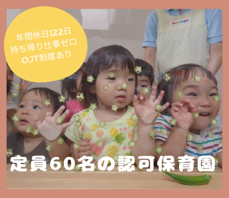 【一時預かり専任】【急募!】美濃太田駅から車で15分、 0~2歳定員60名の認可保育園♪扶養内◎