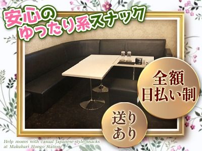 募集求人 和風テイストの落ち着いたスナックでママのお手伝い♪ 22歳~40代まで幅広く活躍中! 職種 スナックのフロアレディ 雇用形態 アルバイト パート 仕事特徴 主婦・主夫活躍中 未経験歓迎 経験者優遇 日・週・即日払い 髪型・服装自由 ひげ・ネイルOK 駅から5分以内 フリーター活躍中 Wワーク活躍中 送迎制度あり 募集情報 30代の若いママとチーママ、女の子だけで運営しているとても雰囲気の良いスナックです。ママもチーママも面倒見が良く、自然にフォローしてくれるのでナイト未経験でも「気づいたら馴染んでいた」という声が多数♪ *☆*:;;;:*☆**☆*:;;;:*☆**☆ 元気で可愛いママのいるお店で ⇒楽しくお仕事しませんか♪♪ *☆*:;;;:*☆**☆*:;;;:*☆**☆ 20代~40代まで、 年齢や立場に関係なく 無理せず 働ける環境が整っています。 スナックなので ノルマ・罰金・厳しい ルールは一切なし。 自分のペースでOKです◎ 頑張った分は各種手当でしっかり還元。 しかも全額日払いだから、 モチベーションも続きやすいですよ♪ 【お仕事内容は?】 カウンターやテーブルで お客様と 楽しくお話ししながら ドリンクを 作るだけの簡単なお仕事。 難しい接客や営業行為はありません。 未経験スタートの方も多く、 最初はみんなでサポートします♪ 体験入店も可能なので、 「雰囲気を見てから決めたい」 そんな方も大歓迎です。 お友達同士の応募もOK! お気軽にご相談ください♪ 【女の子の声】 ●30代・OL 「ママも若くて話しやすいし、 同世代の女の子が多いので 本当に サークルみたいな雰囲気。 無理なく続けられています♪」 ●20代・学生 「スナックって年齢層高いイメージ でしたが、 全然そんなことなくて 安心しました。 初日から居心地が良かったです!」 その他 【事業内容】 スナック 関連ワード:ママのお手伝い、ガールズバー、スナック