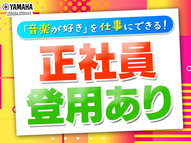 仕事内容 \\ ヤマハグループで働こう♪ // 【ヤマハグループの事務スタッフ】 ヤマハグループの一員として ピアノ技術業務を円滑かつ健全に進める 【事務スタッフ】を大募集! ――【仕事内容について】―― ■調律依頼のお客様受付 ■伝票処理 ■ピアノ技術者への業務連絡 など ※変更の範囲:会社の定める業務 ――【安定のブランド力】―― ヤマハは「感動を・ともに・創る」 を企業理念に掲げ、 卓越した技術力や革新的なアイデアなどを 活かした製品やサービスを提供し続けることで、 世界中で愛される楽器ブランドに成長しました。 ヤマハの楽器や店舗・教室などは お子さまから大人、初心者からプロまで、 多くの方に選ばれています。 ――【こんな方はぜひ!】―― □子育てが落ち着いた主婦(夫)さん □音楽が好きな方 □経理の実務経験がある方 □プライベートと両立して働きたい方 など 志望動機は何でもOKです! ぜひ面接でお聞かせ下さいね♪
