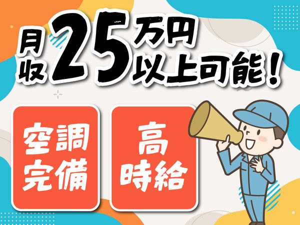 仕事内容 。.。:+* ゚ ゚ *+:。.。:+* ゚ ゚ *+:。.。.。:+*゚ ゚ *+:。.。: 「ずっと立ちっぱなし、動きっぱなしは疲れる…」そんな方に朗報! 機械が動いている間、冷暖房完備の部屋で「40分間」ゆっくり待機する時間があります。 実質的な作業時間は短めなのに、しっかり稼げる珍しいお仕事! 【仕事内容】 全国トップクラスのシェアを誇る大手メーカー工場で 卵パックの「シートづくり」を行うお仕事です。 成型前の素材を機械で加工し、 卵パックのもとになるシートを製造していきます。 入社時に「日勤」または「夜勤」を選択できるので 自分の生活リズムに合わせて安定した働き方ができます。 未経験でも安心の教育体制で、安定して長く働ける職場です。 。.。:+* ゚ ゚ *+:。.。:+* ゚ ゚ *+:。.。.。:+*゚ ゚ *+:。.。: 【 おすすめポイント 】 ❖大手メーカーで安定勤務❖ 扱うのは全国で使用されている卵パック。 景気の波に左右されにくく、長期で安定した収入を得られます。 正社員登用の実績があり、腰を据えて長期的にキャリア形成できる環境です。 ❖快適な職場環境で安心❖ 機械を動かしている間は冷暖房完備の部屋で ゆっくりできる時間(40分)があり、体を休めながら働けます。 日勤の場合はお昼休憩、夜勤の場合は深夜休憩は別であるので、無理なく続けられます。 ❖専門スキル不要!未経験歓迎❖ 学歴・職歴・年齢は一切問いません。一から丁寧にお教えします! 成型前のシート素材をセットして機械を稼働→加工が終わったらシートを取り出して完了◎ 「経験がなくて不安…」「ブランクがあるけど…」といった方も歓迎! ❖週払いOK❖ 働いてもらった分は翌週に週払いとして支給します。 月末まで待つことがないから、欲しいものもスグ買えます☆ ❖プライベート充実❖ 完全週休2日制でなので、メリハリをつけて働けます♪ しっかり休みながら、無理なく続けられます! 。.。:+* ゚ ゚ *+:。.。:+* ゚ ゚ *+:。.。.。:+*゚ ゚ *+:。.。: