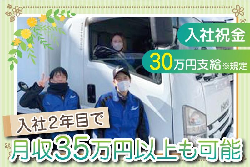 【保険制度】 雇用保険、労災保険、健康保険、厚生年金 待遇・福利厚生 【福利厚生】 ◆入社祝金30万円支給(規定) ◆昇給年1回(業績による) ◆賞与年2回(業績による) ◆社会保険完備 ◆交通費規定支給 ◆車・バイク通勤OK(駐車場あり) ◆休日出勤手当あり ◆資格取得制度あり(準中型・中型免許の取得可能) ⇒費用は当社が全額負担! ◆制服貸与 ◆有給休暇・特別休暇 ◆永年勤続表彰制度あり ◆無事故表彰制度あり(報奨金あり)