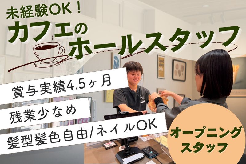 【アピールポイント】 \未経験OK・オープニングメンバー/ カフェスタッフを正社員で募集します! ●2024年賞与実績4.5ヶ月分 ●残業少なめ・連休取得可能 ●髪型・髪色自由 ●ピアス・ネイルOK