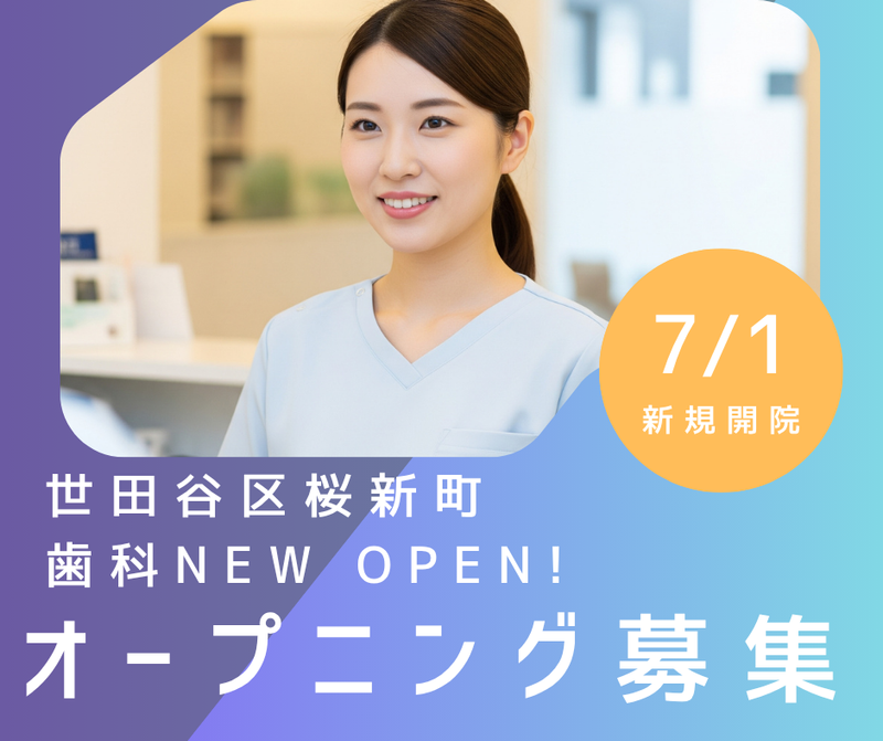 仕事内容 \ 7月開業!歯科デビュー大歓迎 / / 業界経験不問◆Opening募集 \ 「変化を楽しみたい」「前向きに取り組める」そんなあなたを歓迎します! 最新のITシステムを導入しているため、複雑な事務作業も効率的に行える環境です。 【具体的には…】 受付・会計業務、診療補助、器具の準備など。 *IT化を推進 ┗WEB受付システムや電子マネー・クレジット決済を導入。スムーズな対応が可能です。 ―― point! ―― ◎未経験OK ┗電子マネー決済やWEB予約など、最新システムを導入。デジタル化が進んでいるので、操作に慣れればスムーズです。 ◎快適な職場 ┗新しく清潔で温かみのある内装。広めの空間で、スタッフも過ごしやすい設計です。レンジや冷蔵庫完備のスタッフルームあり。休憩時間もしっかり休めます。 ◎オシャレOK ┗華美でなければネイルや髪色も自由。自分らしくお仕事できます。 ◎福利厚生充実 ┗社内割引や資格取得支援など、正社員として長く働ける制度を整えています。 ◎通勤にも便利 ┗駅チカなので、雨の日も通勤も苦になりません。 ―――――――――