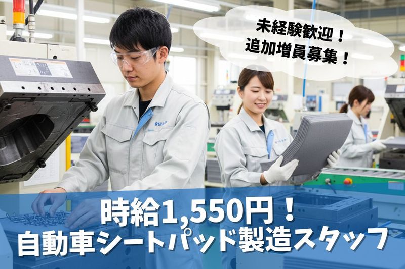 仕事の内容 \✨軽作業なのに時給1,550円スタート!自動車部品製造スタッフ✨/ 「未経験だけど、しっかり稼げる仕事がしたい」そんなあなたに! 大手自動車メーカー向けのシートパッド製造で、高収入と安定した生活を実現しませんか? 【具体的な業務内容】 自動車シートパッド製造工場での、金型へのクリップ・資材セット、完成品の取り出し・検査などのシンプルな作業です。 ・金型へのクリップや資材のセット ・完成品の取り出し、目視検査 ・簡単な検品作業 ・機械操作補助 【✨ココが魅力!✨】 ✅急募求人、面接後即入社OK! ✅未経験・初心者歓迎!2週間の研修と丁寧なフォロー体制あり ✅高時給スタート!月収26万円以上も可能 ✅駅近で通勤ラクラク ✅残業月20時間程度でプライベートも充実 ✅年間休日120日!長期休暇あり(夏季、年末年始、GW) ✅社会保険完備、交通費支給、寮・社宅あり、住宅手当あり ✅給料前払い・即日払い・週払いOK ✅制服貸与、車・バイク通勤OK 【こんな方におすすめ】 ・「ものづくり」の現場で活躍したい方 ・チームワークを大切にできる方 ・18歳以上の方(深夜勤務を含むため)