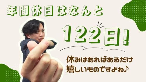 休日休暇 ✅週休2日制 ✅年間休日122日 ✅月8~10日休み ✅希望休も柔軟に対応! \充実の休暇制度/ ・年末年始休暇 ・有給休暇(毎年5日以上の取得必須) ・産休育休 ・出産休暇(3日間/配偶者の出産時) ・新婚旅行休暇(5日間) ・介護休暇 ・転居休暇 ・転居先下見休暇 ・慶弔休暇(3~5日間) ・引越休暇