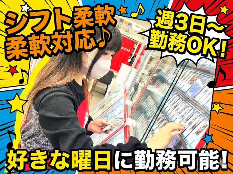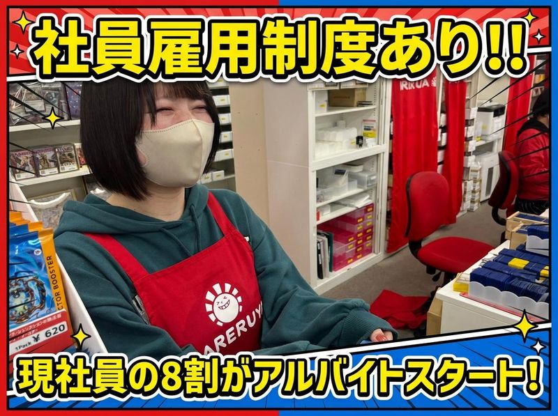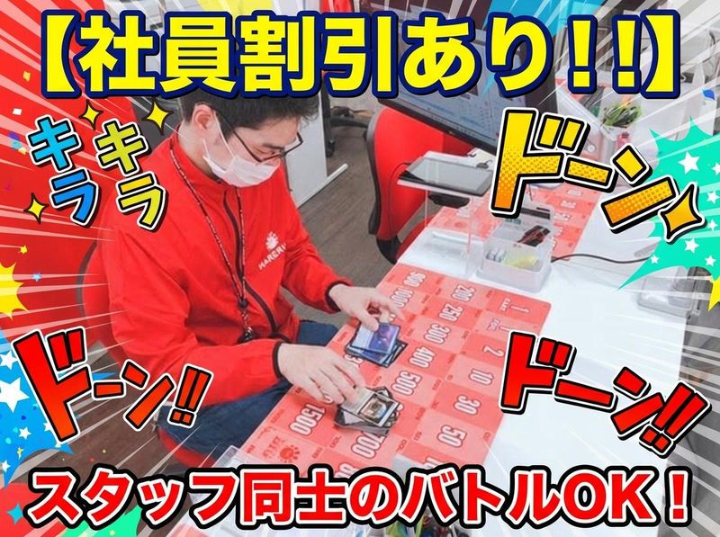 職場環境 20代30代の若手スタッフが活躍中! 特別な経験や資格は一切不要◎ 「トレカは全くの未経験…!!」 という予備知識ゼロからスタートした スタッフも多数活躍しています! 明るく優しいスタッフたちが 協力しながら盛り上げている 居心地のいい職場です♪ 喫煙所:なし(敷地内全て禁煙)