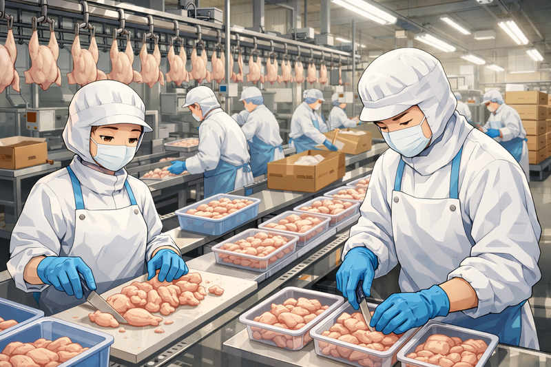仕事内容: 鶏肉加工場でのお仕事です。 ・部位ごとの細かいカット ・計量確認 ・選別、仕分け など ほぼ機械でカットされますが、細かい部位などは手作業でカットします。 未経験でも丁寧に教えてくれるので安心して働けます。