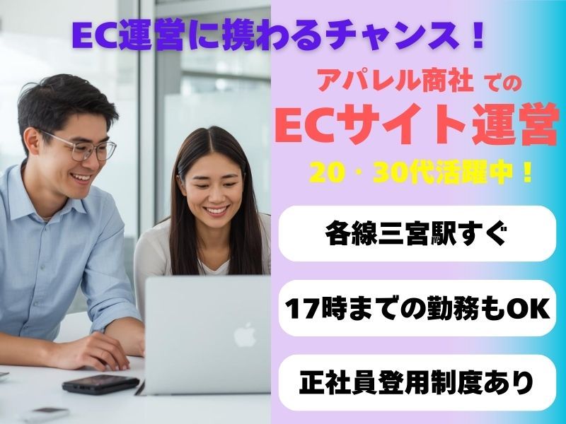 ECサイト運営/正社員登用あり/社会保険完備/交通費支給/神戸市中央区/fW5099h