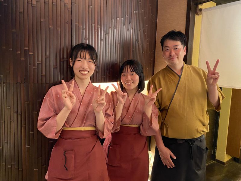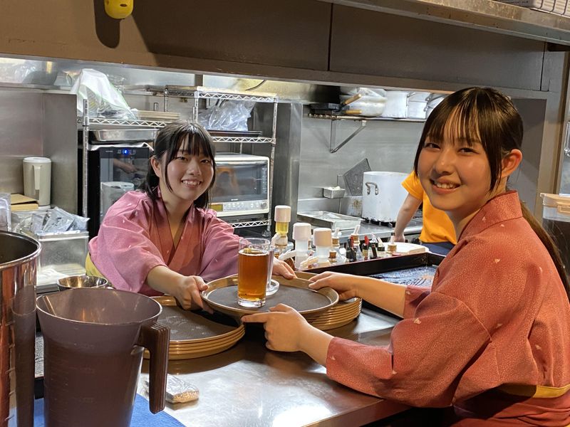 【保険制度】 雇用保険、労災保険 待遇・福利厚生 ※適用されない社会保険がある理由:勤務期間や勤務時間によって加入する保険が変更します。 【福利厚生】 ★交通費規定内支給 ★昇給随時 →英語や中国語など話せる方は早期に時給UP♪ ★制服貸与(女性は着物:簡単に着られる簡易的な着物です) →希望者は着付けも学べちゃいます♪ ★研修制度あり →研修期間でも時給は変わりません! ★従業員割引(割引チケットあり) →美味しい料理が格安で食べれちゃう♪ ★スタッフ紹介制度あり →紹介してくれた方が勤務開始3ヶ月経過後、紹介者に1万円プレゼント♪ ★正社員登用制度あり →楽しくてそのまま社員になった方も♪ ★髪型自由、髪色派手じゃなければOK →オシャレもできちゃう♪ ★まかない1食110円 絶品しゃぶしゃぶも食べれます!ごはんおかわり自由♪ ★社内イベントあり(忘年会など) →費用は全額会社負担で参加も自由です♪