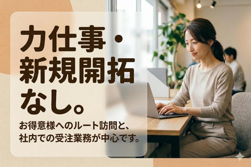 仕事内容 *・。*・。*・。*・。*・。*・。 地元で、無理なく、長く続けられる そんな働き方を探している方へ *・。*・。*・。*・。*・。*・。 遠くへ転職するのではなく、 今の生活圏のまま働ける環境です。 ✅土日祝はしっかりお休み ✅年間休日120日以上 ✅勤務時間の相談OK ✅既存のお客様対応が中心 ✅外回り+内勤のバランス型 生活リズムを大切にしながら、 安定して続けられます。 「収入よりも、まずは安心して続けたい」 そんな方にも合った働き方です。 ◆既存のお客様対応中心 ─────────────────── 営業といっても、 新規開拓がメインではありません。 すでにお取引のあるお客様を担当し、 関係性を維持していただきます。 売り込みではなく、 「最近どうですか?」と様子を伺ったり、 必要な対応を行っていくスタイルです。 プレッシャーのかかる営業ではないため、 営業未経験やブランクのある方でも 無理なく始められます。 ◆外回りと内勤、どちらもあるバランス型 ─────────────────── 業務は曜日ごとに分けて対応します。 ✅外回り日 →既存の取引先へ訪問(社用車使用) ✅社内日 →受注業務補助や問い合わせ対応など 社内での調整や事務作業を中心に対応 また、外回りの日も 遅い時間まで出続けることはなく、 夕方には帰社して事務処理を行います。 ずっと外回りでもなく、 ずっと内勤だけでもない。 生活リズムを整えながら 無理なく働けるのが特徴です。 ◆業務内容はシンプルです ─────────────────── 業務は一つひとつがシンプルで、 特別なスキルは必要ありません。 ・既存取引先へルート訪問(社用車使用) ・状況確認や簡単な打ち合わせ ・社内での受注業務補助 ・問い合わせ内容の社内共有 ・担当エリアの情報整理・報告 訪問エリアは、東京西部(八王子など)〜 神奈川方面が中心です。 慣れてきた後は、埼玉・千葉方面を 担当いただく可能性もあります。 ◆少人数で、落ち着いて働ける環境 ─────────────────── 現在は3名体制。 大きな営業組織ではないため、 距離が近く、相談しやすい雰囲気です。 落ち着いた人間関係の中で、 無理なく仕事に向き合えます。 ◆未経験・ブランク復帰も歓迎 ─────────────────── 営業経験は問いません。 ✨子育てがひと段落した方 ✨久しぶりの仕事復帰の方 ✨地元で長く働きたい方 そんな方も安心してスタートできるよう、 できることから少しずつお任せします。 慣れ親しんだ地域で、 続けていきたい方に向いています。 気になる点は面接時に 丁寧にご説明いたします。 お気軽にお問い合わせください。