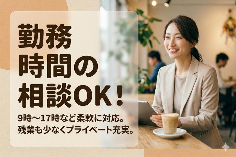 職場環境 スタッフ同士の距離が近く、日々の業務は連携を取りながら進めています。 働き方についても話しやすい環境のため、無理なく仕事に取り組めます。 ライフスタイルに合わせた調整も可能♪ 受動喫煙対策あり(屋内禁煙)