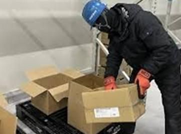冷蔵、冷凍倉庫内での水産品の仕分け作業