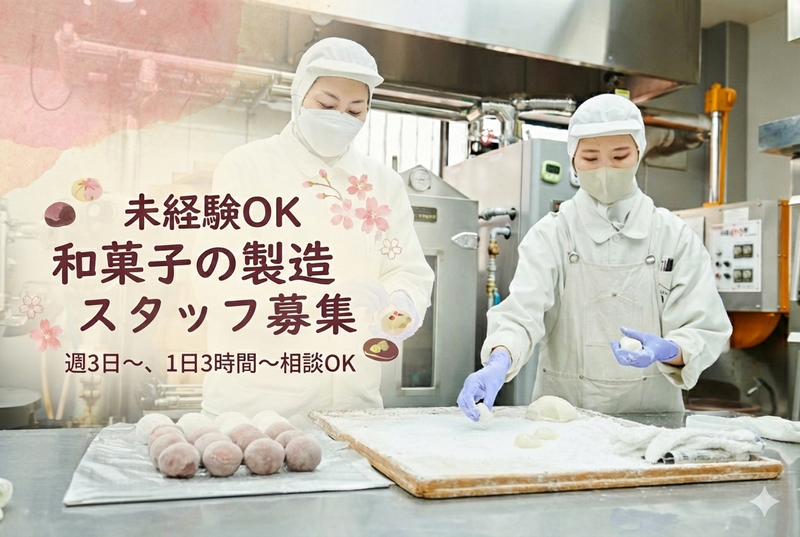 仕事内容 \❁未経験から和菓子作りにチャレンジ❁/ ╭━━━━━━━━━━━━━━━━╮ 正社員として働きたい方を歓迎! ╰━━━━━━━━v━━━━━━━╯ STEP① ▶まずは製造スタッフ(アルバイト)として開始 STEP➁ ▶半年後を目安に正社員登用を予定 (下記の詳細内容を要チェック! ) 「アルバイトから、キャリアを積みたい」 「製造の仕事で長く安定して働きたい」 そんな方にぴったりのお仕事です✨ ❏==================❏ ┏━━━━━━━┓ お仕事内容 ┗━━━━━━━┛ 当店の人気商品、 フルーツパフェ大福「鴻池花火」を はじめとした話題の“フルーツ大福”を 製造する工場での製造スタッフ募集です。 未経験スタートでも、基礎から学び、 ステップアップできる環境が整っています。 【主な製造工程】――― ■ 果物・フルーツのカット ■ フルーツを大福に包む成形作業 最初はシンプルな工程からスタート。 慣れてきたら、 製造ライン内で担当工程の幅を広げたり、 中心となって作業を進めるポジションを お任せしていきます。 【そのほかの業務】――― ■ 完成品の包装・梱包 ※経験や意欲に応じて、 製造管理・新人指導・工程改善 などにも挑戦可能です。 ❏==================❏ ┏━━━━━━━┓ 研修・育成 ┗━━━━━━━┛ \ 未経験からキャリアアップ可能 / 「大福を包む作業は難しそう…」 そう思われがちですが、コツを掴めば 安定して出来るようになります! 先輩スタッフが 一つひとつ丁寧に指導するので、 未経験の方も安心してスタートできます。 実際に、フリーターからスタートして 正社員登用されたスタッフも多数在籍! 「がっつり働きたい」 「将来は正社員になりたい」 そんな想いをしっかり応援します!!! ❏==================❏ ┏━━━━━━━━━━━┓ 正社員登用制度について ┗━━━━━━━━━━━┛ 「そろそろ正社員として 安定した働き方をしたい」 そんな方に向けた登用制度です。 ▼登用までの目安期間 入社後は製造の基礎からスタートし、 半年を目安に正社員登用を目指せます。 ▼登用後は ・ 月給制(20万円~) ・ 有給休暇あり ・ 社会保険完備 といった待遇に加え、 将来のステップアップも可能。 経験や意欲次第で、 ■ 製造ライン内でのポジションアップ (担当工程のリーダー) ■ 新人育成・指導 ■ 新商品の試作やメニュー開発への参加 ■ 工場運営に関わる役割へのステップUP など、単なる流れ作業ではなく、 製造の枠を超えた活躍も目指せます! ❏==================❏ ┏━━━━━━┓ 職場環境 ┗━━━━━━┛ 働く環境にも、こだわっています。 2022年に完成した工場内は清潔感があり、 休憩室はカフェのような落ち着いた空間。 オンとオフをしっかり切り替えながら、 気持ちよく働ける環境づくりを 大切にしています。 現在は、10代~40代の 女性スタッフが中心に活躍中。 「こころはずむ和菓子」という社訓の通り、 黙々と作業するだけでなく、 声を掛け合いながら、 チームで協力して働いています。 「五條堂が好きだから、もっと関わりたい」 「作る側として、ブランドを支えたい」 そんな想いを持つ方が、 長く腰を据えて活躍できる職場です。 ❏==================❏