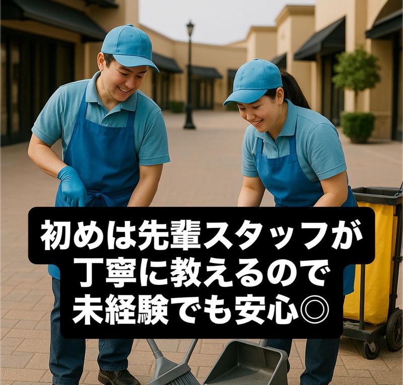 仕事内容 アウトレットモールでの 清掃スタッフを大募集 ✅ライフスタイルに合わせて選べる 4~5時間勤務のお仕事私生活と両立◎ ✅久しぶりのお仕事復帰の方も安心 ✅接客苦手な方にピッタリのコツコツ作業 。o○o。+。o○o。+。o○o。+。o○o。+。o○o。 商業施設での清掃スタッフを募集! 巡回しながら清掃や、お客様から 道を聞かれた場合のご案内なども お任せします♪ 日常清掃なので難しい仕事もなし◎ 具体的には…↓ ●床掃除:モップやほうきを使用 ●ゴミの収集:ごみ箱のゴミを回収 ●トイレ清掃:清掃や備品補充 ●洗面所清掃:洗面台や鏡の清掃。 。o○o。+。o○o。+。o○o。+。o○o。+。o○o。 はじめは先輩と一緒に作業するので 安心してスタートできます◎ 困ったときは質問してください♪ 未経験でも安心して働くことができます◎ 主婦・主夫フリーター、シニアも歓迎♪