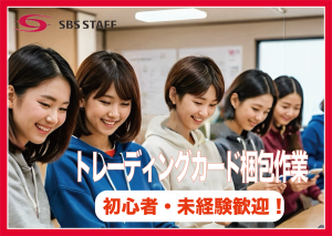 募集背景 増員応募 仕事内容 「今月のおすすめ求人」 <主なお仕事内容> 室内にて簡単な構内作業を中心とした 軽作業を行っていただきます。 ※カードの箱詰め/データ入力 <具体的には> *カードの袋詰め・箱詰め *発送準備(伝票貼り/宛名確認など) *在庫管理 *簡単なデータ入力 など 【1日の流れ(例)】 ◆10:00~ 出勤・朝礼 ◆10:10~ 梱包作業 ◆12:00~ お昼休憩 ◆13:00~ PC作業・梱包作業 ◆19:00 退勤 小休憩は適宜取得していただけます。 休憩スペースもありますので、しっかり休めます! 求める人材 \\ こんな方大歓迎 // ◎週4回以上1日5時間以上勤務できる方 ◎社会人経験2年以上の方 \\ こんな方にピッタリ // *丁寧に実施する作業が好きな方 *コツコツ・黙々作業が好きな方 *自分の仕事に集中できる環境がいい *自由度の高いシフトで働きたい *おしゃれも自由に楽しみたい *週5日のフルタイムでしっかり稼ぎたい アピールポイント \Wワーク・副業にも最適!/ 「本業と両立しながら少し稼ぎたい」 そんな方でもスキマ時間に働けます♪ 週4日、1日5h勤務OKだから 自分のライフスタイルに合わせてシフト調整可能! 短時間でも高時給なので、効率よく収入アップも狙えます★ ================== ☆先輩インタビュー(26歳:女性) ☆ 梱包や検品作業は初めてで不安でしたが、 分からないことがあってもすぐに聞くことが できる雰囲気なので、安心して働くことが できています! 時給も高いし、シフトは家庭の事情も 考慮してもらえるので、 長く続けることができそうです! ☆先輩インタビュー(45歳:女性)☆ 子育てをしながら家庭と両立して 働くことができています! コツコツ作業が好きな私にとっては ぴったりな環境です◎ 分からないことはすぐに聞けるので 安心してお仕事できています! ================== [醍醐味] 多方面でスキルアップ可能です。 女性が多数活躍中 [厳しさ] [こんな人が活躍] ☆先輩インタビュー(26歳:女性) ☆ 梱包や検品作業は初めてで不安でしたが、 分からないことがあってもすぐに聞くことが できる雰囲気なので、安心して働くことが できています! 時給も高いし、シフトは家庭の事情も 考慮してもらえるので、 長く続けることができそうです! ☆先輩インタビュー(45歳:女性)☆ 子育てをしながら家庭と両立して 働くことができています! コツコツ作業が好きな私にとっては ぴったりな環境です◎ 分からないことはすぐに聞けるので 安心してお仕事できています!