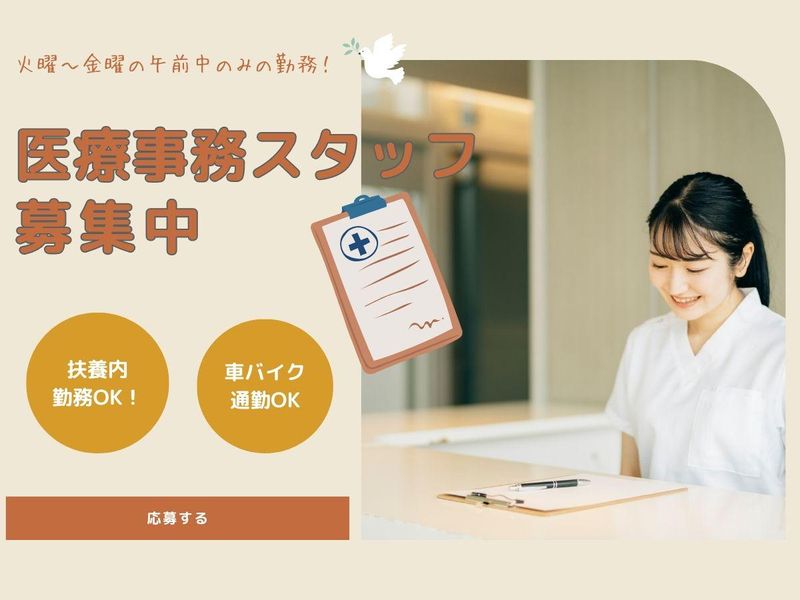 求めている人材 ✨医療事務経験者・有資格者歓迎!! ⏩扶養内勤務OK! ⏩副業・WワークOK! レセプト業務の経験がある方歓迎! ブランクがある方も歓迎しますので、 お気軽にご応募ください✨ あなたの資格や経験を活かして、 穏やかな職場で働きませんか? お子さんが学校に行っている間や、 午後からの時間を有効に使いたい方、 掛け持ちバイトと両立したい方など ライフスタイルに合わせて働けます✨