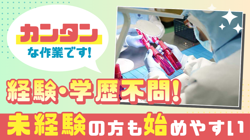 求めている人材 ●経験不問 ●学歴不問 ●資格不問 ●ブランクOK \こんな方にピッタリです/ ・短期間でしっかり稼ぎたい ・コツコツ作業が好き ・軽作業の仕事を探している ・平日のみ働きたい方 \以下の経験を活かせます/ ・ライン作業 ・軽作業 ・倉庫内作業 製造や工場勤務が初めてでも 安心して始められる環境です!