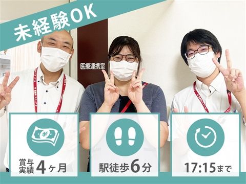 17:15!託児所あり♪年間休日114日◎医療補助制度あり◎積極採用中!駅徒歩6分◆経験不問★賞与4ヶ月実績☆社会福祉士は4名在籍【西宮市、香櫨園駅、病院、社会福祉士、正職員】