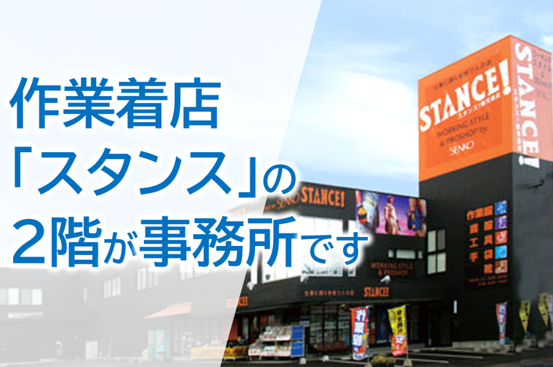 職場環境 本社事務所は作業服ショップスタンスの2階です。 しっかり休めて、プライベートの時間も大事にしながら働ける環境です。 学校行事・家族行事など用事がある場合に、お休みを取れる体制を整えています。 喫煙所:喫煙所あり(屋外)