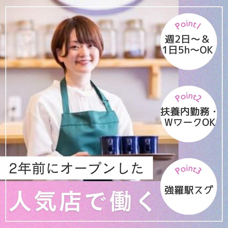 求めている人材 ✨未経験歓迎 ✨ブランクOK! ✨英会話が出来なくても インバウンド対応できる方! \ こんなスタッフ活躍中!! / ◯ご近所の大学生や主婦・フリーター 中高年・シニア等幅広い世代が 当店で活躍しています♪ (※高校生はごめんなさい) ◯カフェやファミレス、居酒屋、 喫茶店などでキッチンスタッフや ホールスタッフのアルバイト経験のある方 ◯軽作業やフォークリフト・清掃 データ入力・医療事務・コールセンター など、異業種からの転職者 ◯短期・単発・日払い問わず アパレルや映画館・ホテル カラオケなどの受付などの経験がある方 \ 活躍中のスタッフの志望動機は… / ⭐夜勤コンビニスタッフから 日勤の仕事に転職したい ⭐オープニングから働いていた 飲食店の経験を活かしたい ⭐在宅の仕事とWワークで働きたい ⭐ドラックストアやスーパー 本屋の品出しを活かしたい など様々! ・―・☆・―・☆・―・☆・―・☆・―・ 未経験でも、先輩スタッフが 丁寧に教えするのでご安心ください! もちろんカフェスタッフ経験者の方も歓迎! 万全のフォロー制度を ご用意しておりますので、 「ブランクがある…」 「経験が浅くて心配…」 という方も安心です✨ ・―・☆・―・☆・―・☆・―・☆・―・