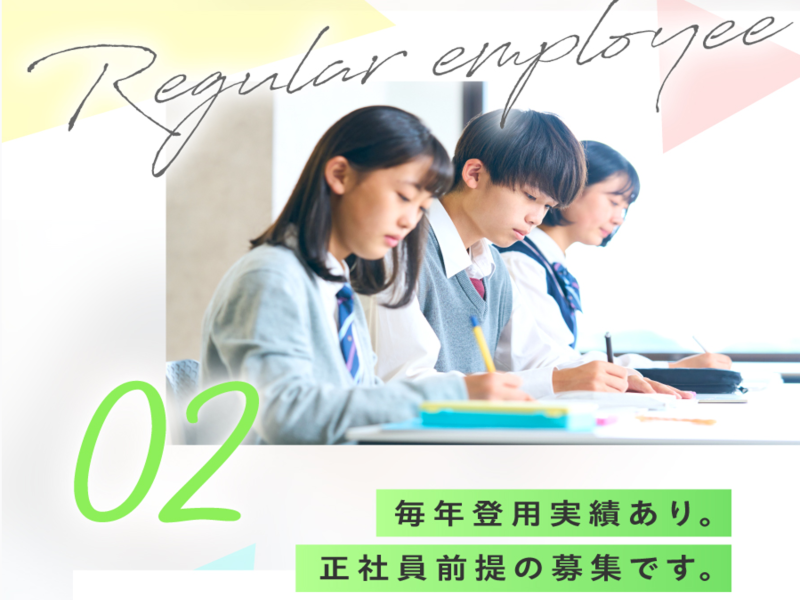 アピールポイント: ~安心ポイント【NSG教育研究会】~✨ ・入社後1年間は同世代社員のメンターがつきます。 ・指導科目は文系・理系のいずれかで問題ありません。 ~安心ポイント【NSGアカデミー東進衛星予備校】~✨ ・授業を教えることはなく支える役割。 ・メンターのほか指針やマニュアルも整備されています。 ~安心ポイント【働き方について】~✨ ・朝はゆっくり13時半出社! ・今年の4月から年間休日120日以上に改定! ・残業時間は平均20h/月 ・充実な福利厚生にも注目! ~安心ポイント【キャリアパスについて】~✨ 当社では、社員の6割以上が教育業界未経験からスタートしています。入社1年目は手厚い研修とフォロー体制であなたの教育業界デビューを全面バックアップ。 また、ライフステージの変化にも柔軟に対応しているため産休・育休からの復帰実績も多数。人事と相談しながら、昼間勤務のみの教材/テキスト制作や、経理/総務などグループ内で別のキャリアを広げたケースもあります!