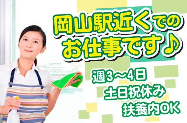 岡山駅スグ【オフィスビルの清掃】選べる時間帯/週3~4日/土日祝休み/扶養内OK/交通費支給(一部)