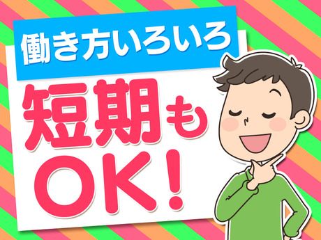 勤務時間 << スマホでシフト完結! >> □日数や曜日の希望は気軽にご相談を♪ □平日のみ(土日祝休み)など自由! □短期~長期まで大歓迎 □生活スタイルを崩さずに勤務が可能◎ □前日までにスマホでシフト提出OK <勤務時間> 8:30~17:30 *残業なし! *時間内でしっかり働ける♪ (●・ω・●)ノプライベート重視でOK! *シフト制 *週1日~OK *ド短期OK *単発OK *即日勤務OK