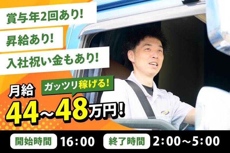 【保険制度】 雇用保険、労災保険、健康保険、厚生年金 待遇・福利厚生 【福利厚生】 ◆入社祝い金有 入社後、3カ月勤続で5万円、 6ヶ月勤続で10万円、12カ月勤続で15万円支給 ┗カムバックキャンペーン適用(再々雇用は対象外) ・昇給あり (毎月の売上、運行本数、日数、時間により変動) ・賞与年2回(業績・評価による) ・お年玉支給 ・交通費規定支給 ・残業手当全額支給 ・運行手当 (配送先により数千円~1万円以上の可能性あり) ・職務手当 ・安全手当/無事故手当(無事故期間により金額up) ・回送高速手当 ・出張手当 ・宿泊手当 ・スマホ通信費補助 ・資格取得支援制度(費用半額会社負担) ・寮完備(家具家電付き/家賃1万円~) ・慶弔 (死亡弔慰金、障害・休業見舞金、 結婚・出生・就学祝金、退職餞別金) ・交通災害保険(死亡・障害・入院・通院) ・住宅災害保険(火災・風水害・地震見舞金) ・制服支給(ポロシャツ・ジャンパー)