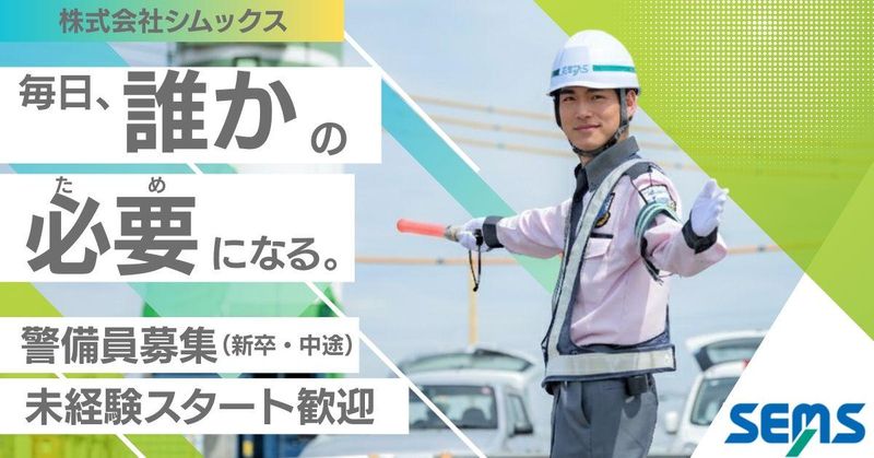 選考プロセス 勤務開始日は相談に応じます。採用決定当日からの勤務も可能! ■当社ホームページ■ https://www.keibi-sems.co.jp/ ■事業内容■ 警備業/総合ビル管理業/人材派遣業/鳥獣対策業 ■事業エリア■ 宮城県/福島県/茨城県/栃木県/群馬県/埼玉県/千葉県/東京都/神奈川県/長 野県/静岡県 ■提供している業務■ 警備業(施設警備・機械警備・交通誘導警備・イベント警備・鉄道警備・交通規制・輸送警備・特殊警備) ビル管理業、人材派遣業、鳥獣対策業、防犯・防災機器販売