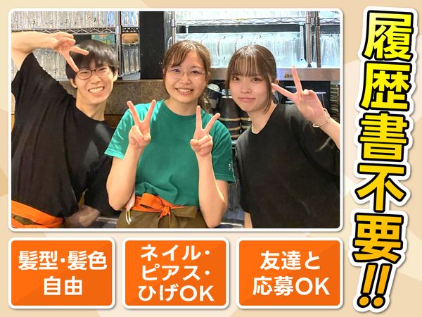 仕事内容 仕込み・盛付など簡単な作業から始めていただきます。 社員さん・先輩スタッフと一緒に行っていただくので、キッチン業務未経験の方もご安心ください! ❖**・・・**❖**・・・**❖**・・・**❖**・・・**❖ <こんな方も歓迎!> ・扶養内で働きたい方 ・バイトデビューや未経験者 ・人気店・おしゃれ居酒屋で働きたい方 ・ワイワイ楽しく働きたい方 ・学校と両立したい大学生 ❖**・・・**❖**・・・**❖**・・・**❖**・・・**❖ *お店について* 当店名物の野菜巻き串は新鮮な食材にこだわり、1本ずつ丁寧に焼き上げる看板メニュー! 博多名物料理から美味しくてヘルシーな野菜巻き串、インスタ映えするドリンクメニューまで取り揃えています! ゆったりくつろげる半個室、大人数での宴会や接待にもピッタリな居酒屋です!