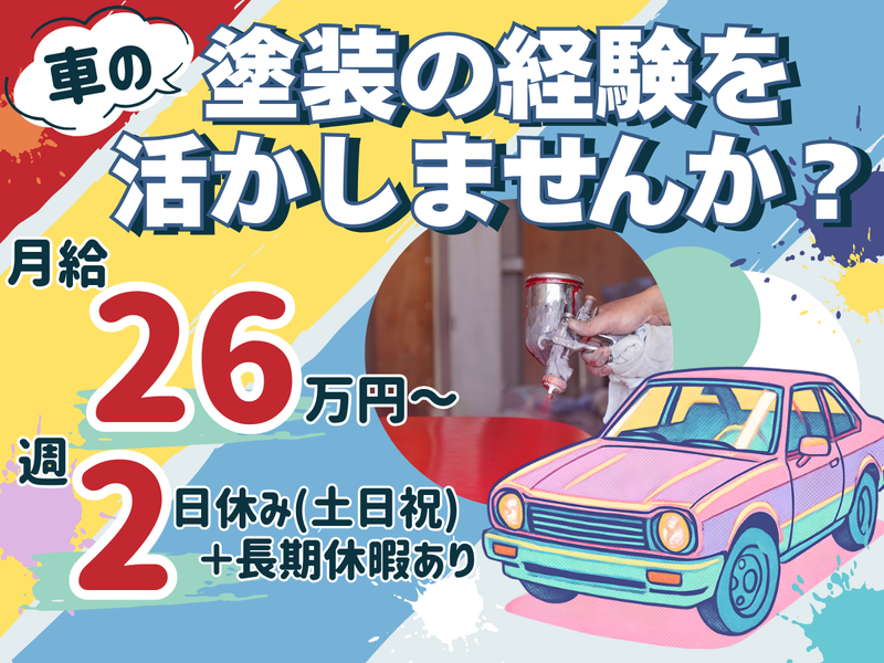 仕事内容 ✅地元密着でリピートのお客様多数の企業♪ ✅様々な車を触るので車好きの方は必見です! ✅存分にスキルを発揮できる職場です◎ ―――――――――――――――――――― 【仕事内容】 ●「専念」 鈑金と塗装は完全分業。塗装だけに100%集中できます! ●「時間効率」 分業制でムダをカット。一人で抱え込まないから、残業軽減◎ 今回お任せしたいのは「塗装」部門 -鈑金後のパテ研ぎ~塗装、磨きまでの 塗装の一連をお任せします。 ★調色作業、吹付塗装、仕上げ研磨 最終的な仕上げと色差の確認など 塗装 ★その他 ・工具や機材の準備・片付け・清掃 ・作業に必要な工具や塗料などを準備し、 作業後の片付けや整理整頓 などをお願いします。 ★多種多様な車を扱うので、よりスキルが身についていきます♪ ★個人のノルマなどはありません。 もしうまくいかない部分や足りないスキルは 一つ一つ教えていきます。 ――――――――――――――――――――
