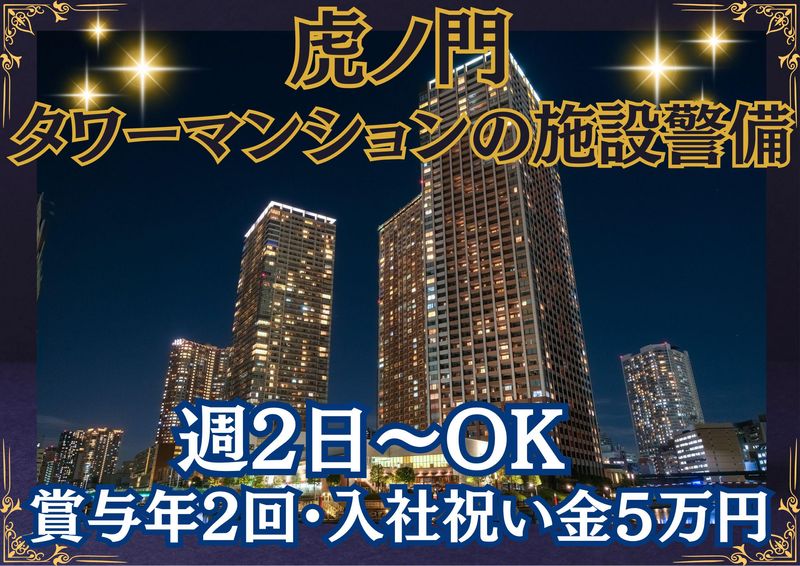 仕事内容 虎ノ門にある最高級のタワーマンションで施設警備のお仕事! 挨拶をしたり、人と話したりするお仕事なので、コミュニケーションを取ることが好きな方にもオススメです! 【お仕事内容詳細】 ・モニター監視 ・ホテル内の巡回 ・受付 など 複数人で働いているためサポート体制がバッチリ◎ 休憩所や男女別の個別ロッカーあり! 新しい綺麗な施設で快適に勤務できます。 まずは研修からスタート! お仕事の説明や、言葉遣いなど、座学&実践で丁寧に教えます。 解らない事など、何でも気軽に質問してくださいね。 未経験からお仕事を始めたスタッフさんがほとんどですので安心してくださいね。 【様々な方が活躍中!】 シンテイ警備では20代・30代・40代・50代・60代と 若い方からミドル・中高年・60歳以上のシニア年代の方まで、様々な方が活躍しています。 それぞれの方が希望に合わせた働き方を実現できるのは、 お仕事多数のシンテイ警備だからこそ! あなたの働き方もきっと見つかります。