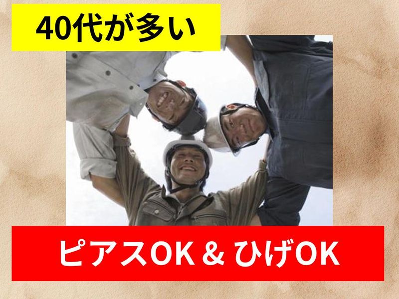【保険制度】 雇用保険、労災保険、健康保険、厚生年金 待遇・福利厚生 【福利厚生】 ◇社会保険(法定による) ◇現場までの交通費規定支給 ◇ヘルメット・安全靴貸与 ◇髪型・ピアス自由 ◇家電付き個室寮完備 ◇車通勤OK ◇車両手当 ◇現場手当 ◇入社祝金規定支給