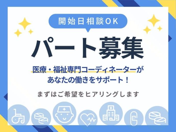 PR・職場情報 勤務日数や時間帯のご希望などお気軽にご相談ください! お仕事のやりがいもしっかり手に入ります! 専属の担当者が二人三脚でお仕事探しをサポートします! 求人の特徴 住宅街と自然に囲まれた特養に併設されているデイサービスです。 1日最大40名(定員)のご利用者様を介助、活動を支援しています。 お風呂やレクリエーションを楽しみに通われる方が多くいらっしゃいます。 看護師さんも配置されているので医療的なことで分からないことがあっても安心です。 風通しの良い施設であなたの資格や経験を活かして働きませんか? / 丁寧なOJTで安心してスタートできます♪ 未経験、ブランクのある方もお気軽にご相談ください! \ 「株式会社MEDILCY」は・・ ◆専属の担当者がお仕事が決まるまで手厚くサポート ◆ご友人紹介キャンペーン開催中! ※詳しくは応募時にご確認ください! \ 皆様のお声にお応えします / ・今の勤務先の時給や条件に不満がある… ・ブランクがあって不安だ… ・キャリアアップしたい… ・自分にあった勤務先が分からない… ・人間関係で困ってます… ・福利厚生が充実しているところがいい… ・プライベートも大事にしたい… ↓↓そんな方は・・・↓↓ ぜひ一度「株式会社MEDILCY」へお気軽にご相談ください。 あなたそのお悩み解決いたします!
