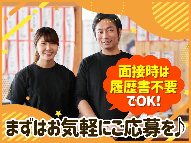 仕事内容 《おすすめ求人POINTのご紹介》 ✅週2日~1日3h~!2週毎シフト! ✅注文は手書きなのでカンタン♪ ✅髪自由・ピアス&ネイルOK! ✅週末手当あり!時給+30円UP! ✅食事補助あり!staff割引あり! ✅自転車&車通勤OK!駅チカ♪ ✅給料手渡しも相談OK! ✅面接時は履歴書不要でOK(^^♪ ================ 先輩スタッフ卒業のため 新規スタッフをこの度大募集☆彡 「学校と両立しながら働きたい」 「友達をもっと作りたい」 「初バイトに挑戦したい」 など一緒に新しい一歩を 踏み出してみませんか(*‘ω‘ *)? ================ 【具体的なお仕事について】 ✅お席のご案内 ✅オーダーのお伺い ✅料理・ドリンクの配膳 ✅ドリンク作り ✅テーブルの後片付け を中心にお願いします◎ 慣れるまでは基本 先輩スタッフが近くにいるので、 「この料理の名前なんだっけ?」 「ビールを上手に注ぐコツは?」など、 分からないことがあれば 何でも質問して下さいね! - 《Q1:まずは何から?》 裏方から覚えて仕事の流れを 覚えて頂きます(/・ω・)/ ステップ①洗い物からスタート! ステップ②ドリンク作り ステップ③料理やドリンクの配膳 ステップ④オーダーのお伺い この順番でステップを踏んで 徐々に教えていきます! ▶これで晴れて一人前♪ 《Q2:初バイトも安心♪》 注文は手書きなので 難しい機械操作はありません! そしてレジ業務はなし! 席に金額が書かれた紙を持って行って、 お客様からお金を受け取って、 おつりを数えて渡すだけでOK! 《Q3:慣れてきたら…》 ✅サラダなどのサイドメニュー作り ✅簡単な盛り付け などの簡単な調理補助の い手伝いもお任せします!