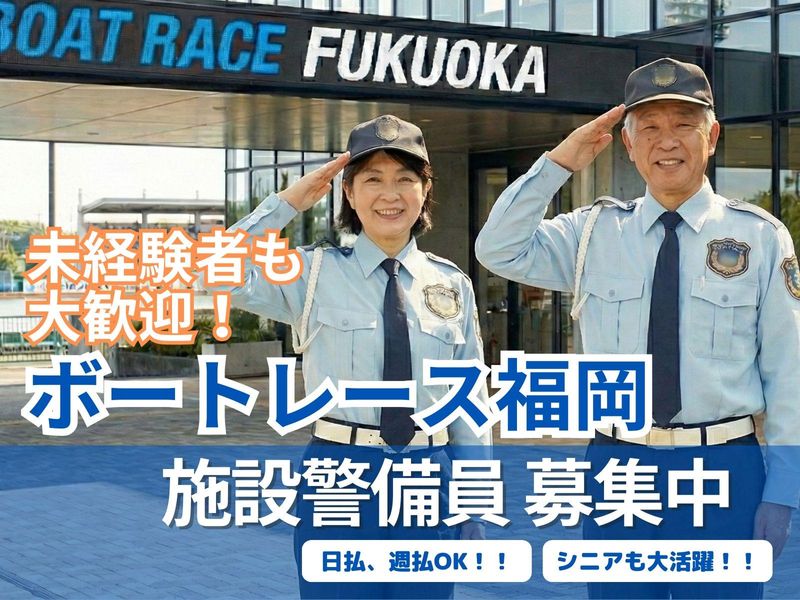 仕事内容 ✅入社時の装備品負担ゼロ ✅週払い、日払いOK! ✅交通費の別途支給あり ✅直行直帰OK! ✅未経験でも大歓迎! 福岡市中央区那の津にある競艇場 『ボートレース福岡』の施設警備のお仕事! ≪具体的には≫ ・定期的に施設内を巡回していただき 不審者、不審物の有無を確認 ・施設へ出店しているテナント様への カギの貸出、管理 ・施設への入出者管理 など 毎月固定のシフトと天候に左右されない施設内環境で安心、計画的に働けることが最大の魅力です! 今まで入社した方は未経験や高齢の方でもみなさん1ヶ月ほどで仕事に慣れ、生き生きと働かれています! - 当社では従業員の方に安心して働いていただくため、様々な制度が充実しています。 ■日払い、週払いOK(規定あり)■ 給与の受け取り方法を選択できます! 日払い、週払い、月払いと 三種類の支給方法を準備しています。 ■時間外手当別途支給■ 8時間を超えて働いていただいた分には 時間外手当として割増時給が支払われます。 ■社会保険加入■ 健康保険、雇用保険、労働保険に 加入できます! 病気や怪我のときも安心できます! ≪職場環境≫ ・毎日安定した収入で長く働ける会社です。 ・社会保険も加入できるので病気になっても安心! ・休みの希望も気軽に出せます! ・入社の際にはキレイな制服を支給! ・性別問わず未経験から活躍中。 - ■大手の安心保証■ 福岡市内およびその近隣で たくさんの現場を受注しているので、 「仕事がなくて収入が減るかも…」 という心配は不要です! 交通誘導警備から施設警備、 機械警備、イベント警備まで、 幅広いお仕事を用意しています。 万が一 「この現場はちょっと合わないな…」 と感じても、すぐに別の現場を ご紹介できるので安心です。 あなたの頑張りをしっかり評価します。 もちろん入社時の装備品負担ゼロ。 必要な道具はすべて会社が用意しますので、 安心して始められます。 -
