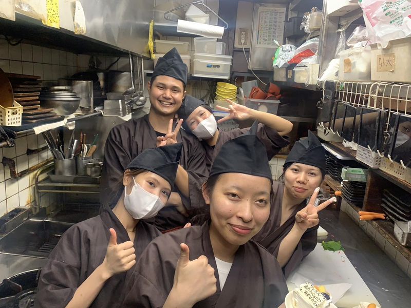職場環境 ・日本語をしっかり使いたい留学生が活躍中! ・ベトナム、ネパールなど海外出身チーム(比率4:1) ・日本人のお客様に、あなたの日本語が通じる喜びがあります! 楽しく元気に勤務できる創作居酒屋です!