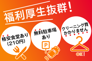 仕事内容 ================= ・年間休日120日以上 ・残業ほぼなし! ・未経験活躍&若手活躍! ・男性の育休実績あり ・社員食堂あり! ・無料送迎バス&無料駐車場あり ・昇給あり ================= 今回募集しているお仕事は、 製造ラインの洗浄業務です。 製造終了後にラインの洗浄をしていただきます。 夜勤終了後(21:00~6:00)の時間帯での勤務となりますので体力に自信のある方必見です。 <入社後フロー> ・入社教育(工場で働くうえでの基本的なルールを座学で学びます)(初日に実施) ・OJTによる業務の習得 上記の業務をしていただきます。 第二新卒の方、ブランクのある方も大歓迎です。 充実した教育があるので安心して働けます。 <職場環境> ブランクがある方も 丁寧に1から指導しますので安心してご応募ください! ワークライフバランスも充実させながら働くことができますよ♪