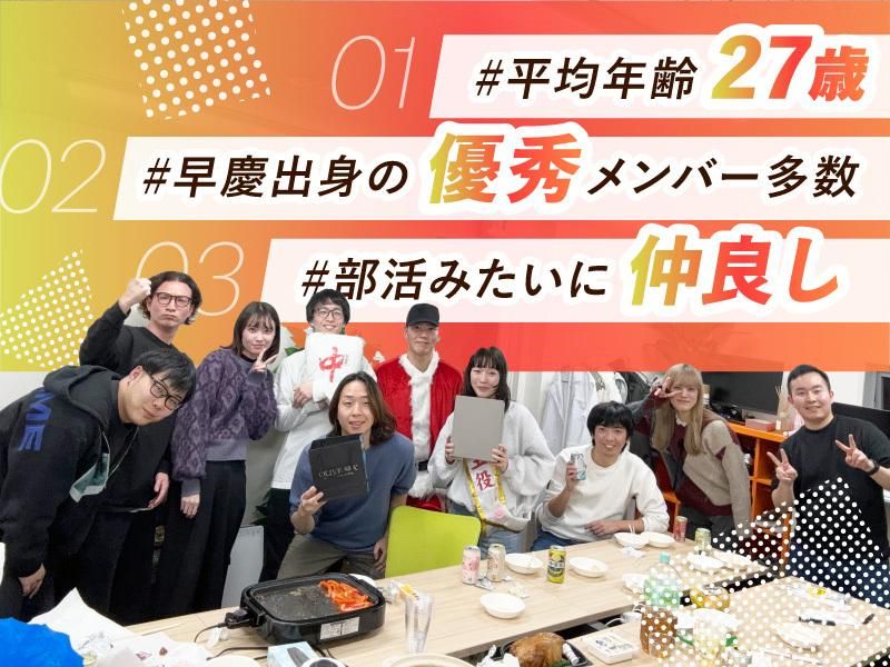 仕事内容 【この求人のポイント】 ✅ 年2回100万超の大型インセン ✅ 平均年齢27歳!急速成長できる環境 ✅ 上流設計〜改善まで一気通貫で経験 創業3年で、年商17億突破!/  ̄ ̄V ̄ ̄ ̄ ̄ ̄ ̄ ̄ ̄ ̄ ̄ ̄ ̄ 平均年齢27歳。 マーケティングのプロ集団が集まる 急成長ベンチャーです。 売上最大化に向けた戦略設計〜改善まで 事業成長に直結するマーケ全体を担います。 ◆具体的な仕事内容◆ ・広告戦略設計/運用(Google・Yahoo・SNS) ・KPI設計/数値分析(CPA/CVR改善) ・LPO/CVR改善施策の立案・実行 ・クリエイティブ検証/改善 ・記事/コンテンツディレクション ・案件ごとの戦略設計/進行管理 ◆入社後について◆ ・経験を活かして早期に案件担当 ・月数百万〜数千万規模の運用をお任せ ・戦略設計まで裁量を持って実行 ◆職場環境◆ ・平均年齢27歳 ・早慶&MARCH卒が7割以上 ・少数精鋭のマーケ組織 ・高単価案件を担当 ・成果主義(年功序列なし) ◎メンバーの約7割が未経験スタート ◎入社年次や経験に関係なくチャンスあり 月2回の社内勉強会は、 日々の学びや成果を持ち寄ってディスカッション。 マーケティング力をアップデートし続けられる場があります! 「いい人しか採らない」という採用ポリシーもあり、 人間関係も非常にフラットです。 社員インタビュー  ̄ ̄V ̄ ̄ ̄ ̄ ̄ ̄ ̄ ̄ ̄ 25歳/前職:事業会社 「入社後すぐに 月1,000万円規模の案件を担当。 広告運用だけでなく、 LP改善や戦略設計まで任され、 事業を伸ばす実感を感じながら 成長ができています」 カジュアル面談も受け付けてます◎ 気になった方はまずご応募ください。
