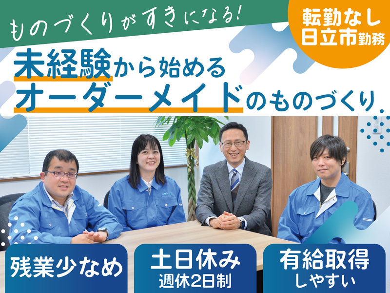 職場環境 ・休憩スペースやお昼を食べる場所あり ・化粧室は男女別 ・お弁当持参OK ・車通勤OK ・無料駐車場完備 <アクセス詳細> 日立市の他、東海村、常陸太田市、 常陸大宮市、那珂市、高萩市、 ひたちなか市からもアクセス良好! ・UIターン/U・Iターン歓迎 喫煙所:喫煙所あり(屋外) ※工場とオフィス内は禁煙 ※分煙・禁煙オフィス