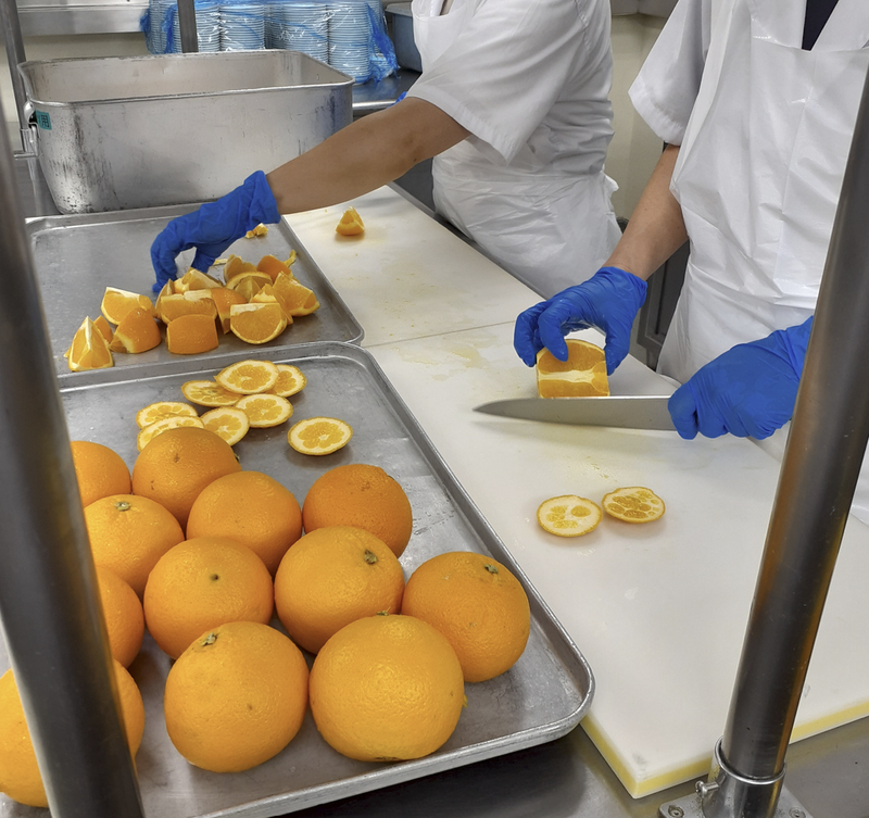 学校給食の盛り付け