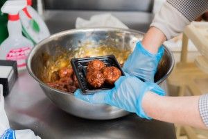 昼まで短時間のお惣菜パック詰め、盛り付け